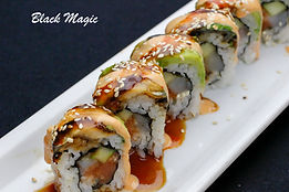 Eel, avocado w/ spicy mayo, sweet sauce, dynamite sauce & sesame seeds